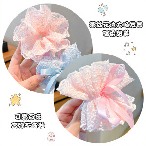 女の子用レース巾着ヘアゴム、蝶結び、ダブルボールヘッド、フラワーヘアロープ、ベビーポニーテールヘアロープ