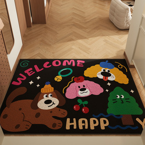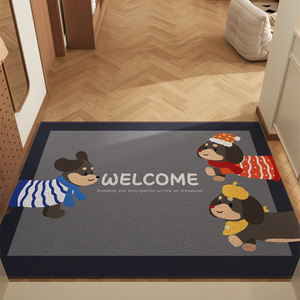 漫画のかわいい玄関フロアマット、家の玄関用のカット可能なワイヤーリングフットマット、玄関の泥をこする、汚れにくいフロアマット