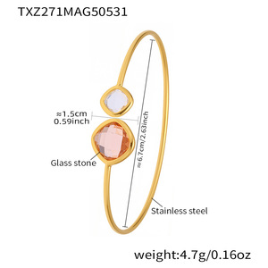 シュガーキューブ双頭スクエアカラーチェコグリーンガラスストーンブレスレットステンレス鋼ゴールドメッキライト高級気質オープンブレスレット女性用