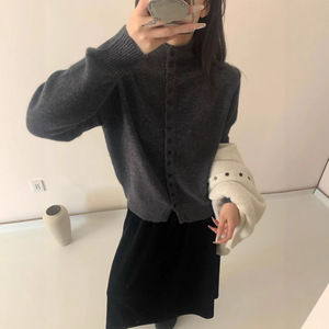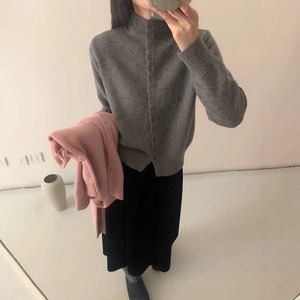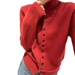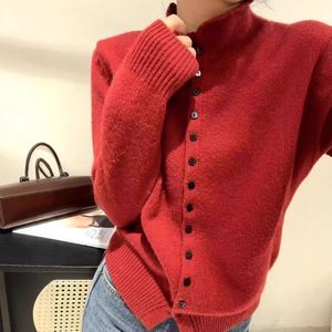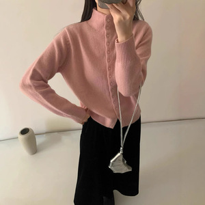 スクエアバックルハーフタートルネック、スタイリッシュでスタイリッシュなニットカーディガンジャケット、ファッショナブルで多用途な2025秋冬新作女性用ソリッドカラーセーター