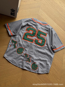 sup 外国貿易卸売 2025ss 新しいツイルアップリケメッシュ半袖野球ユニフォームジャージ Tシャツ男性と女性のための同じスタイル