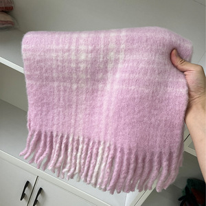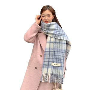 チェック柄ウールタッセルスカーフ韓国風高級冬モヘア暖かいスカーフ男女兼用