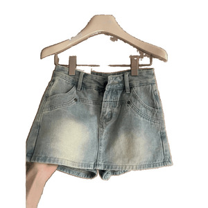 アメリカンレトロデニムスカートパンツ女性のための夏の2025新しいaラインスリムで多用途のホットガールヒップカバーショートパンツスカート