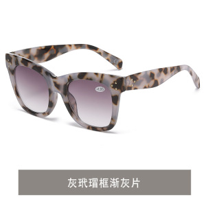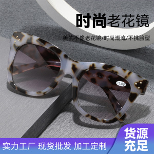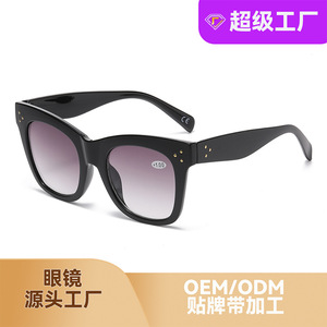 新しいファッショナブルなプログレッシブ老眼鏡ヨーロッパとアメリカの大型フレームソーラー老眼鏡女性用 2 色高精細ラウンドフレーム読書メガネ