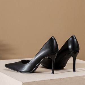 [ストアホットセール] 本物のソフトレザーハイヒールレディースハンドメイドシューズ2025新しいプロフェッショナル多用途ポインテッドトゥスティレットヒール