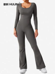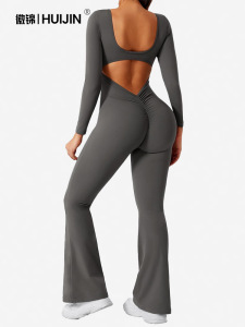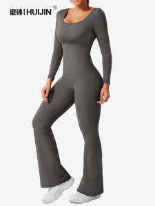 ヨーロッパとアメリカの新しいワンピースヨガウェア、スリムフィット、ヒップアップ、フレアパンツ、フィットネス、カジュアル、中空、美しいバック、スクエアカラー