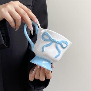 蝶結びハイマグ 1 個セラミックウォーターカップコーヒーミルクカップカップルペアカップクリスマスギフト