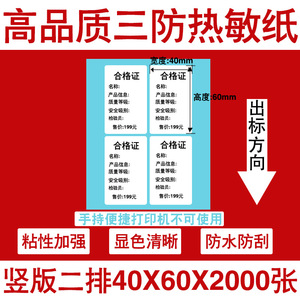 三防热敏标签打印纸不干胶标签60×40*30电子称价格标签条码贴纸