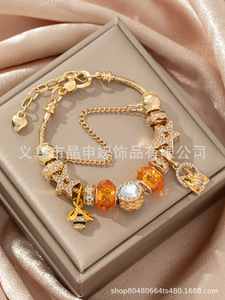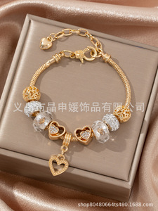 Panjia ブレスレット - DIY クロスボーダー人気のステンレス鋼ビーズブレスレットマルチエレメントオイルドリップラインストーン電気メッキ UV ジュエリー
