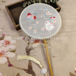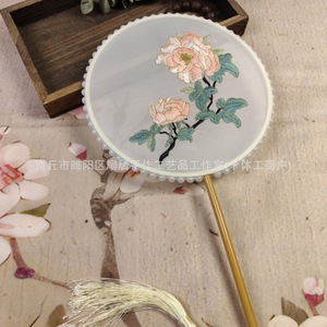 古代風刺繍扇子、古典漢服写真撮影、手作り特殊形状刺繍扇子、翡翠竹ハンドル扇子、ダンス扇子