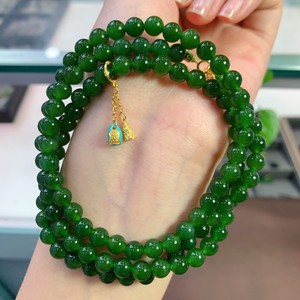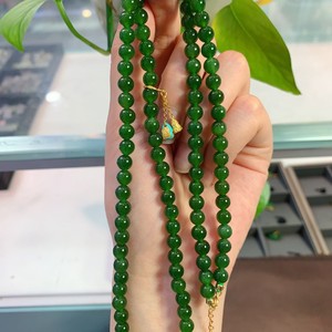 天然菠菜绿和田玉碧玉108颗项链 搭配s925银钱包配件 6mm多圈手串