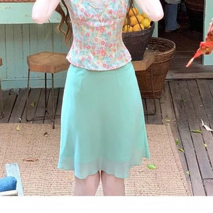 Pure Desire レース半袖パッチワーク花柄トップミントスリムハイウエストスカートスーツ夏
