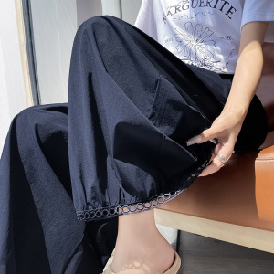中空レースブルマ女性の 2025 夏ドレープバルーンパンツカジュアルワイドレッグルーズシンプルなアイスシルク 9 点パンツ