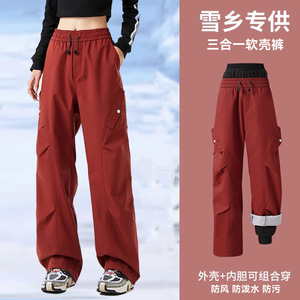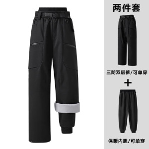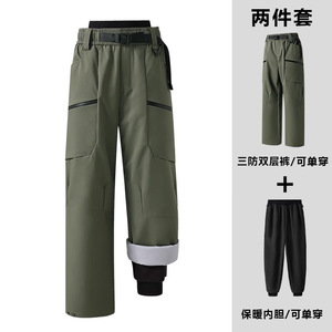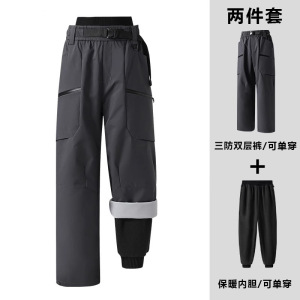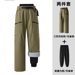 アウトドア3in1テフロン加工ジャケットパンツ 男女兼用 ソフトシェルパンツ 防風防水保温 3WAYスキーパンツ ワークパンツ