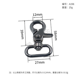 人気の金具アクセサリー、バックパック用飾り、A198シリーズ亜鉛合金キーホルダー、バッグショルダーストラップ用バックル、フック