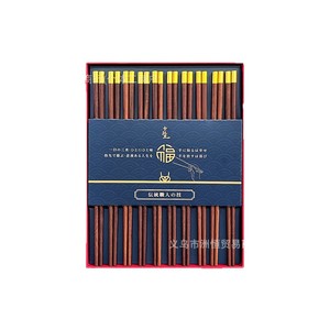 中国産紫檀福箸、無塗装、無ワックス、滑り止め、ギフトボックス入り、ギフト用、丸型、紫檀箸10膳セット