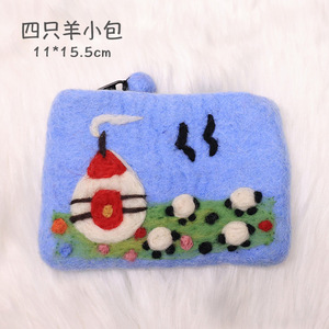 インスタイル ウールフェルト小銭入れ かわいい子羊 草原 ポーチ型 コインバッグ クラッチバッグ 森ガール風
