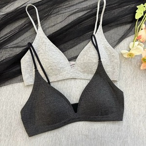 細い肩紐付きフレンチディープVネック下着、小胸女性用、三角カップ、薄型、シームレス、スチールフリー、大きな胸が小さく見える、快適なブラジャー