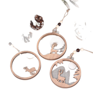 クロスボーダークリスマス木製中空ヨーロッパクリスマスツリー装飾ペンダントラウンドヘラジカ木製クラフト装飾品