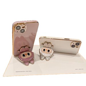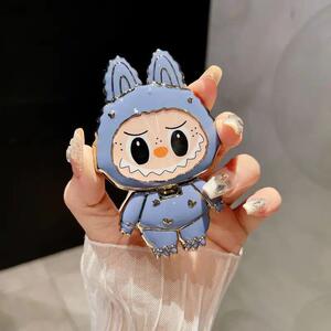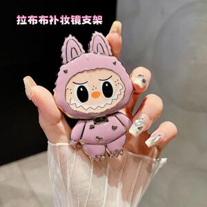 漫画かわいいラブブ携帯電話ホルダーラブブ化粧鏡ホルダーミラー携帯電話ホルダーは回転して折りたたむことができます