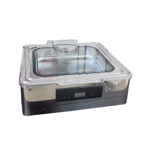 長方形フラットカバーデジタル表示大型シースルーダイニングストーブ(ダブルコンパートメント)