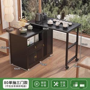 可旋转茶桌小茶车柜胡桃色楠竹可移动泡茶台阳台家用桌椅组合茶几