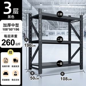 厚みのある中間倉庫 200*50*196-黒 3 層