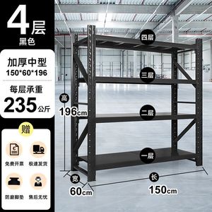 厚みのある中間倉庫 150*50*196-黒 4 層