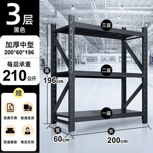 厚みのある中間倉庫 200*60*196-黒 3 層