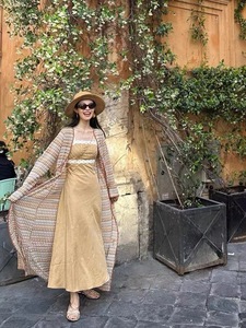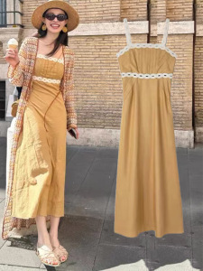 Zhong Chuxiと同じスタイルのイエローステッチサスペンダードレスフレンチリゾートスタイルニットカーディガン日焼け止めジャケット女性用
