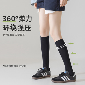 脚痩せJKソックス純綿圧力ふくらはぎソックス女性用黒色オーバーニーハイソックス中高筒ロングソックス強圧秋冬用