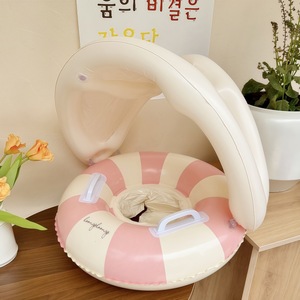 (空気入れプレゼント)取り外し可能サンシェード - 活気あふれるオレンジストライプの浮き輪【おすすめ7.5-17.5kg】