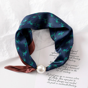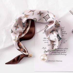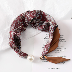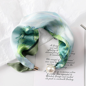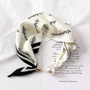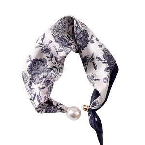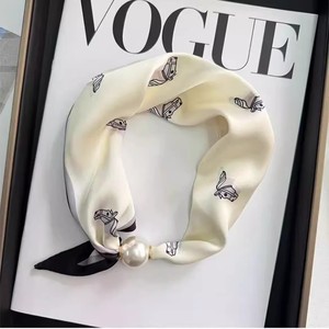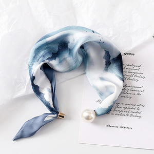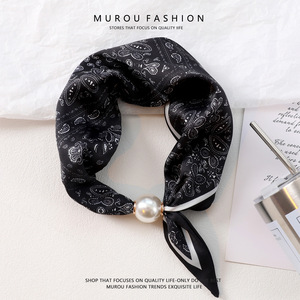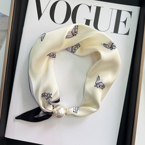 2025 春夏新作小さな正方形のスカーフパールネックレス磁気バックル怠惰なシルクスカーフ女性のネックプロテクターネックレス鎖骨チェーンスカーフ