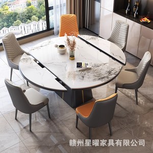 軽量高級スレートダイニングテーブル、格納式折りたたみ式家庭用モダンシンプルな小さなアパートの正方形と円形の兼用ダイニングテーブル