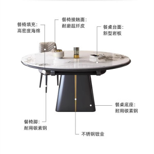 118 長さ * 76 幅 * 76 高さ CM; 厚みのある岩板伸縮式シングルダイニングテーブル; ブラックベース; シャネル岩板テーブルトップ