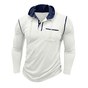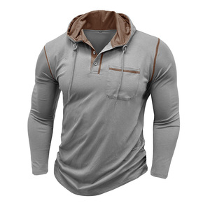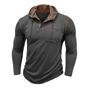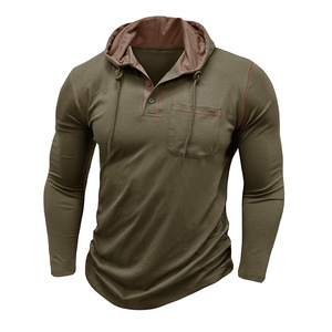 2025 外国貿易クロスボーダーメンズ長袖 Tシャツアマゾンヨーロッパとアメリカのメンズフード付きヘンリーシャツ秋と冬のアウトドアトップ