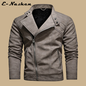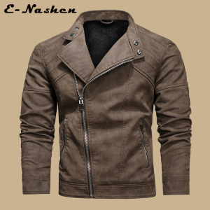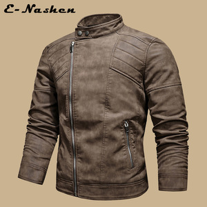 外国貿易メンズジャケットメンズ秋冬斜めジッパースリムPUオートバイレザージャケットメンズトレンディラペルレザージャケットメンズ