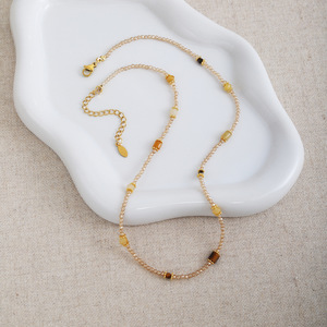 欧美跨境真金黄铜电镀香槟水晶项链颈链小米珠细款ins风ins风爆款