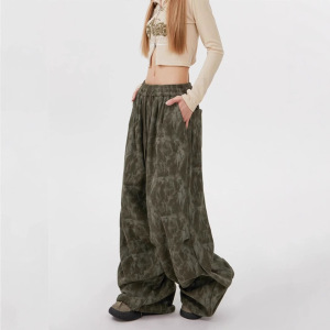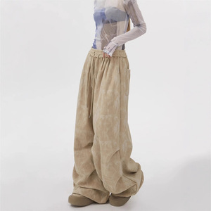 原宿ストリートヒップホップグラフィティ絞り染めルーズストレートワイドレッグフロアレングスパンツ男性と女性のためのカジュアルで多用途なパンツ