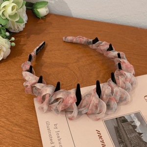 【カラフルなグラデーション】プリーツメッシュウェーブヘアバンド 女性用 夏用 歯付き滑り止め 高頭囲ヘッドバンド 花びらグラデーション