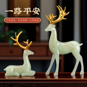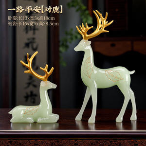 中国のハイエンドの青翡翠の鹿の装飾品デスクリビングルームホーム玄関ホールワインキャビネットの装飾新築祝いのギフト