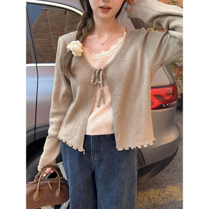 小团甜美慵懒假两件针织衫2025春季新款韩系设计感内搭上衣女