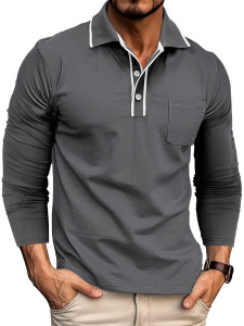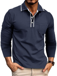アマゾンカジュアルビジネスラペルトップ秋冬長袖ポロシャツクロスボーダーメンズラペルTシャツトップ