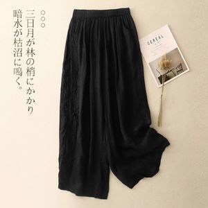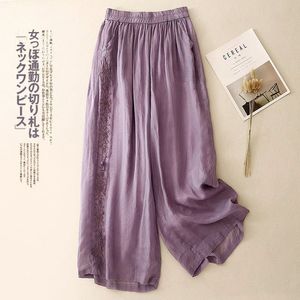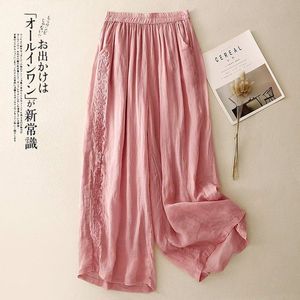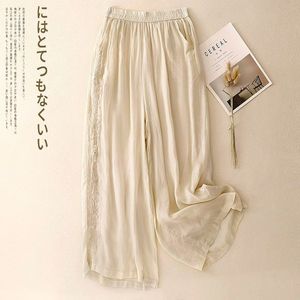 重工刺绣感棉麻休闲裤春夏季新款百搭文艺复古阔腿裤大码女装