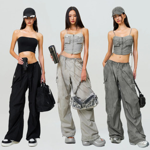 SMFKStorm ストーム ワイドレッグ パラシュート パンツ 刺繍 カーゴパンツ