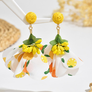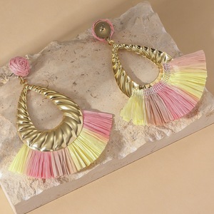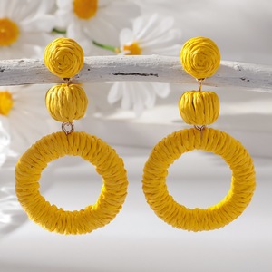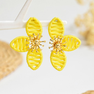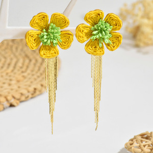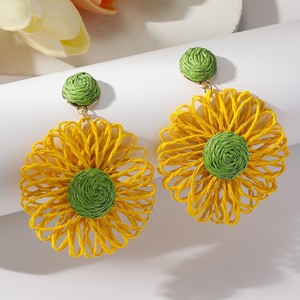 リゾートスタイルのラフィアヒトデフラワータッセルイヤリング海辺の個性誇張イヤリングファッショナブルな夏の新しいイヤリング