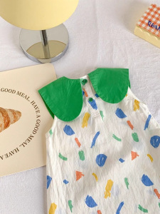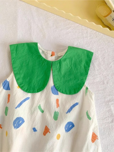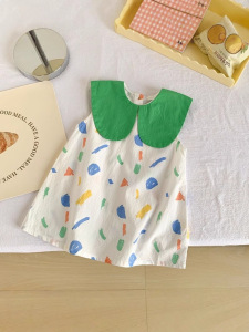 夏の女の子のファッショナブルなノースリーブベストドレス落書きラペルベビーファッショナブルなプリンセススカートベビーかわいいドレス