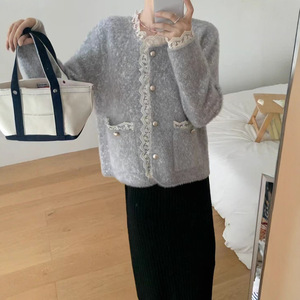 レースフレンチイミテーションミンクショートジャケット2025新しいスタイルセレブリティカーディガントップレース