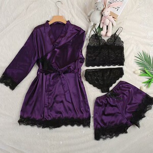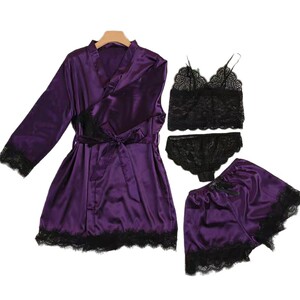 2025 ホットスタイル外国貿易模擬シルクセクシーな大きいサイズの女性のホームウェアディープ v ネグリジェベストセット 4 点セット