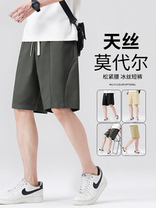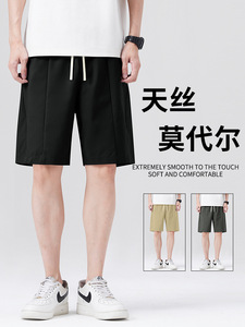 テンセルモーダルショーツメンズ 2025 新しいカジュアルアイスシルクショーツメンズドレープ夏薄型通気性 5 点パンツ